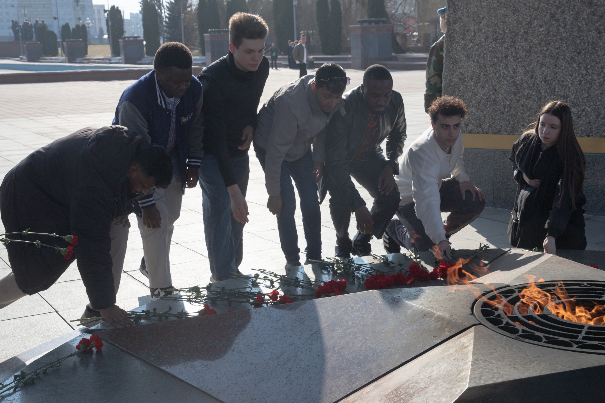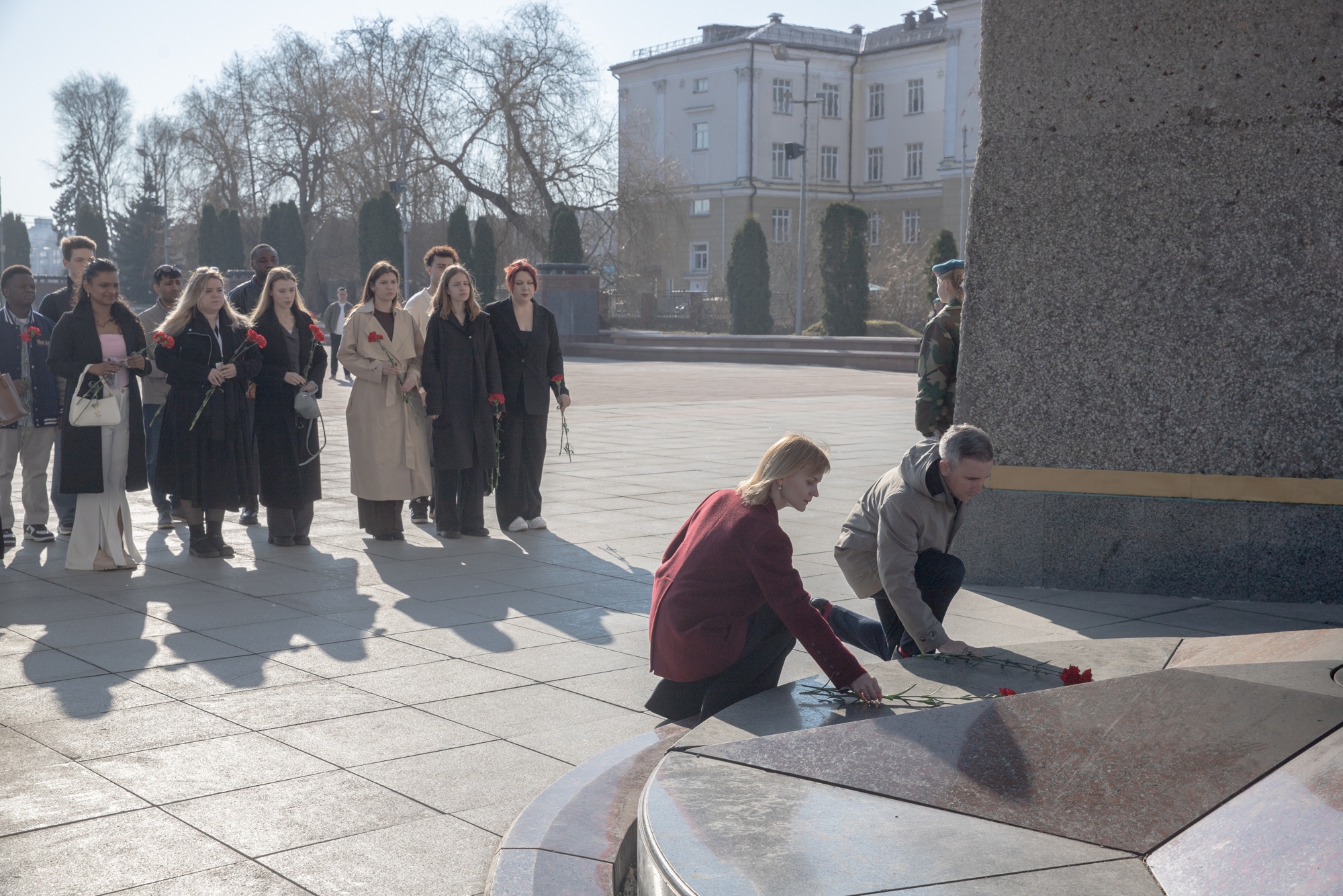 Вместе с генеральным директором Центра культуры «ВИТЕБСК» Глебом ЛАПИЦКИМ и председателем Витебского городского Совета депутатов Ольгой ИВАНОВОЙ ребята возложили цветы к монументу советских воинов, партизан и подпольщиков Витебщины у Вечного огня.